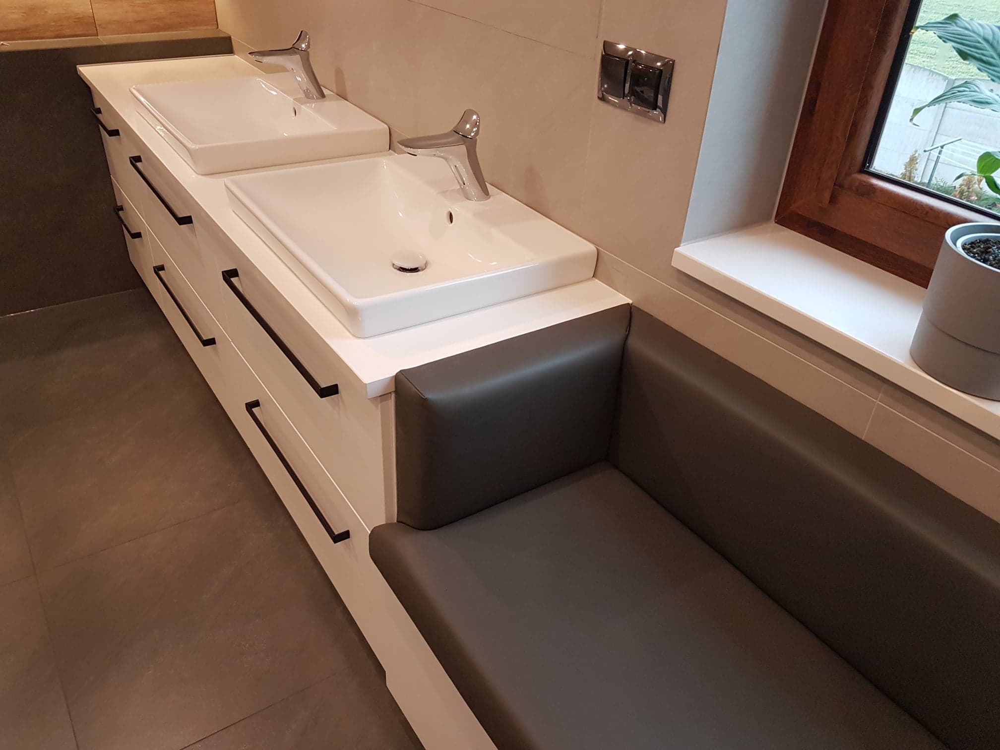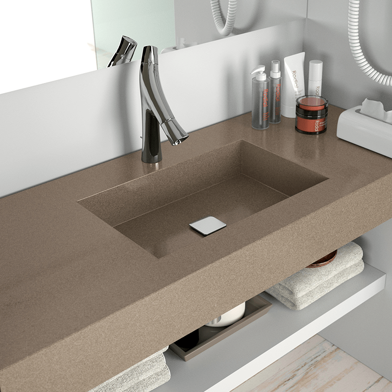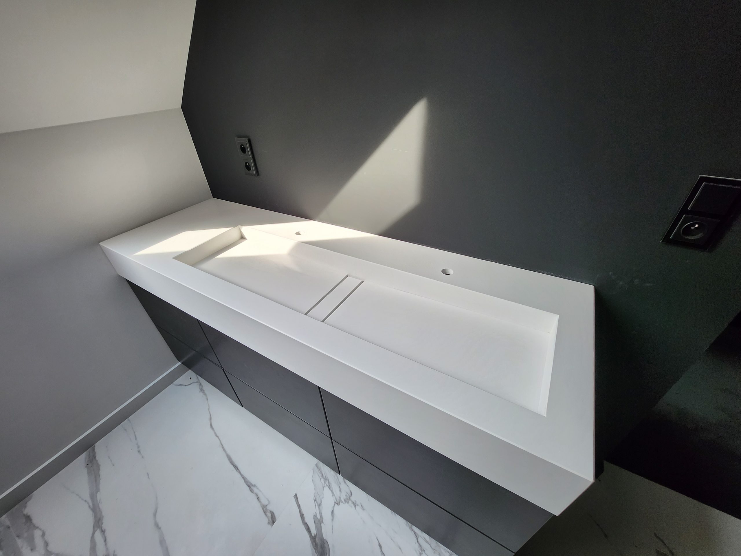 W swojej ofercie posiadamy również zintegrowane z blatem umywalki oraz brodziki prysznicowe grupy Cosentino.